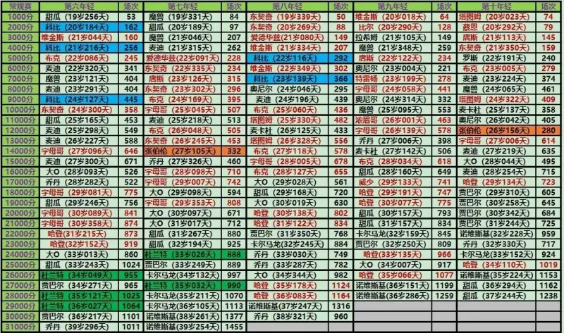 杜兰特要不是21000分左右时候跟腱断了,不然第二年轻一直是他