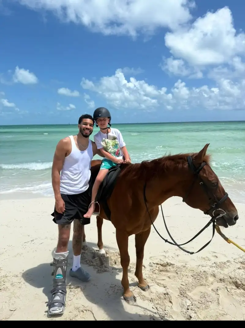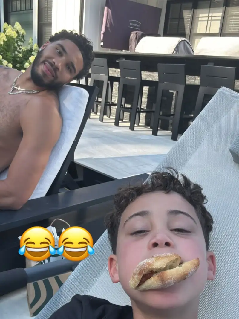 “Deuce的大日子!!八岁了🤯!我最好的朋友!生日快乐小家伙!爸爸对你的爱超越你的想象!”杰森-塔图姆附文道。