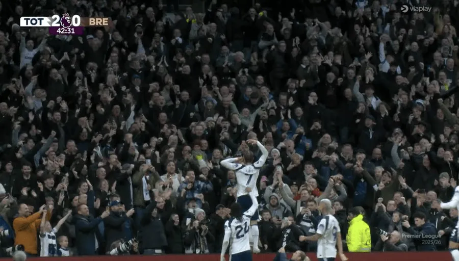 虎扑12月06日讯 本轮英超,哈维-西蒙斯精彩一条龙破门,热刺2-0领先布伦特福德。