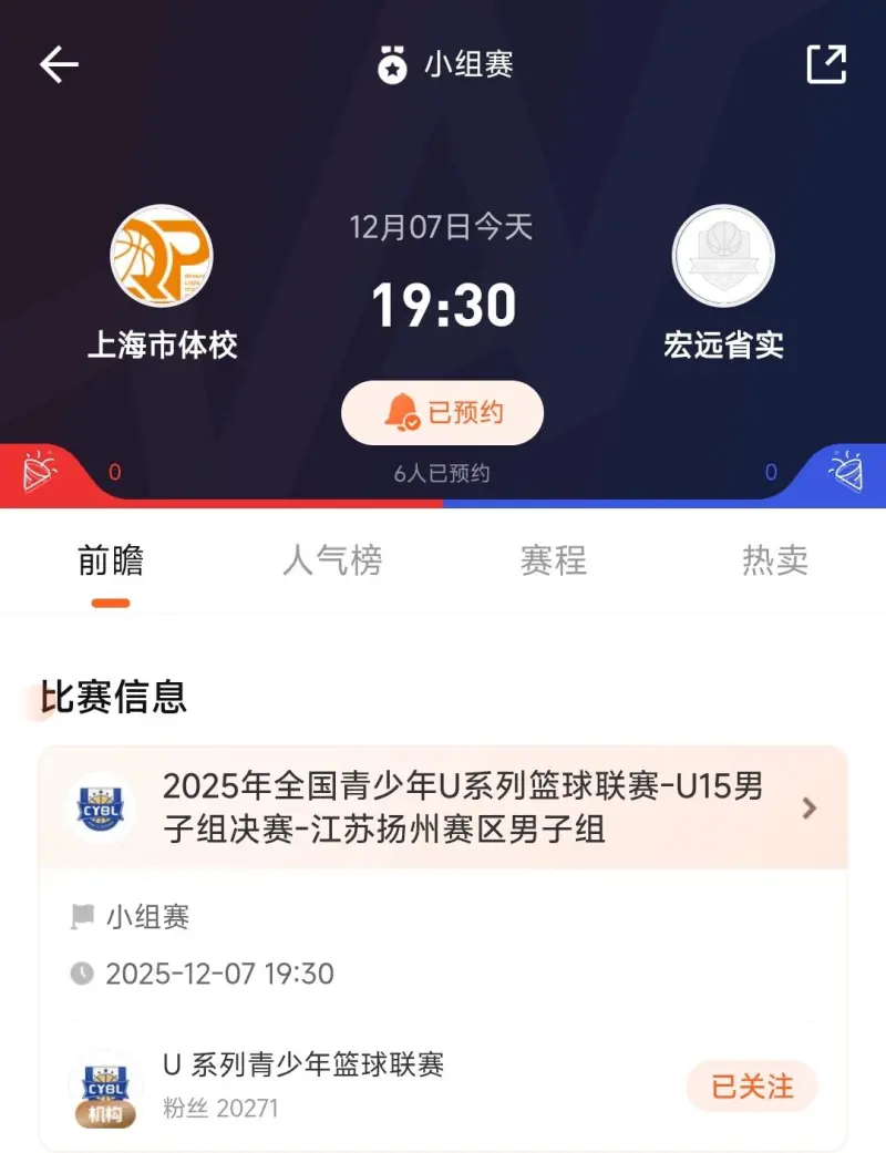 12月7号 晚19:30 宏远省实 VS 上海体校队