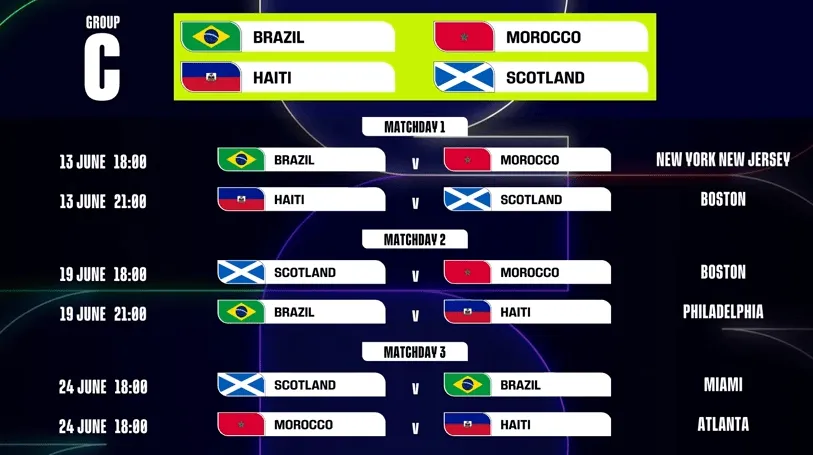 [流言板]美加墨世界杯C组赛程:首轮巴西vs摩洛哥,末轮和苏格兰交手由虎扑足球资讯 发表在国际足球资讯 https://bbs.hupu.com/482