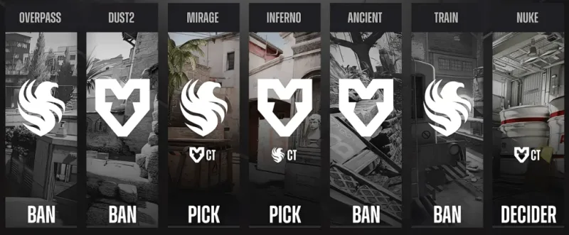 Falcons禁用Overpass,MOUZ禁用Dust2