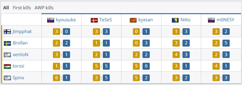 上半场Falcons选择防守方开局。手枪局失利后,Falcons强起失败进入ECO局。第三局,Falcons经济局赌区成功,NiKo与Teses沙鹰双人四杀完成翻盘。第六局,MOUZ抢香蕉道被kyousuke双杀抗住,MOUZ强攻B区打成二打四守包残局,torzsi一打三回合四杀逆转残局。第十局,MOUZ爆弹夹击A区战术成功,双方战成5-5平。上半场MOUZ 7-5 Falcons,在自选图上暂时领先。