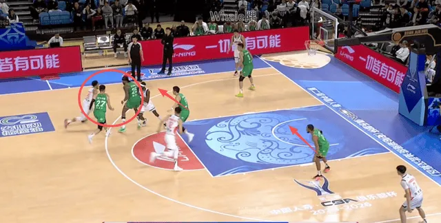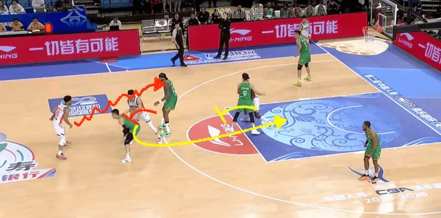 上图,北控男篮的廖三宁就曾借助该战术,突破内线后完成劈扣。