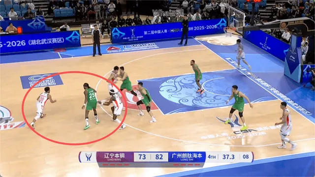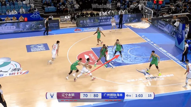 第四节39秒,广州继续采取Spain action战术来攻辽宁防守。