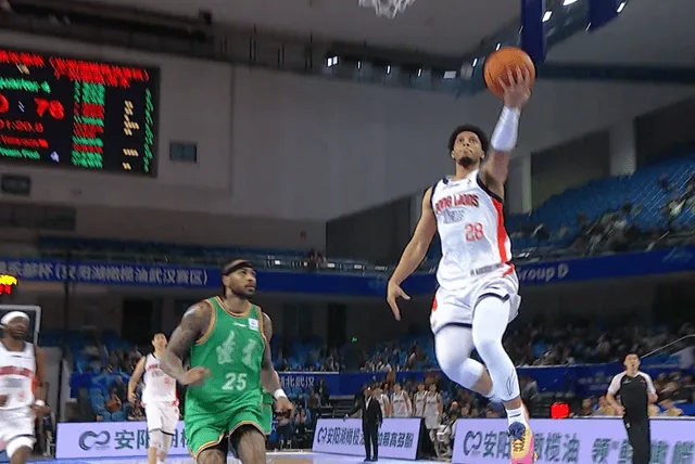 持球人威金顿看到莫兰德重心左移后,立刻攻莫兰德右侧,加速到篮下后,挑篮两分到手。