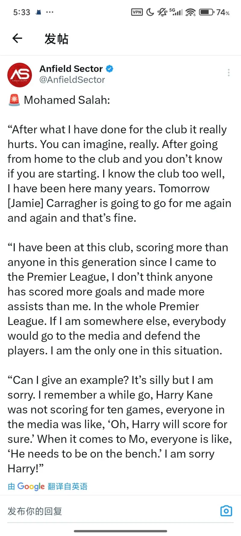 狗屁,外网几个利物浦大v全是站萨拉赫的