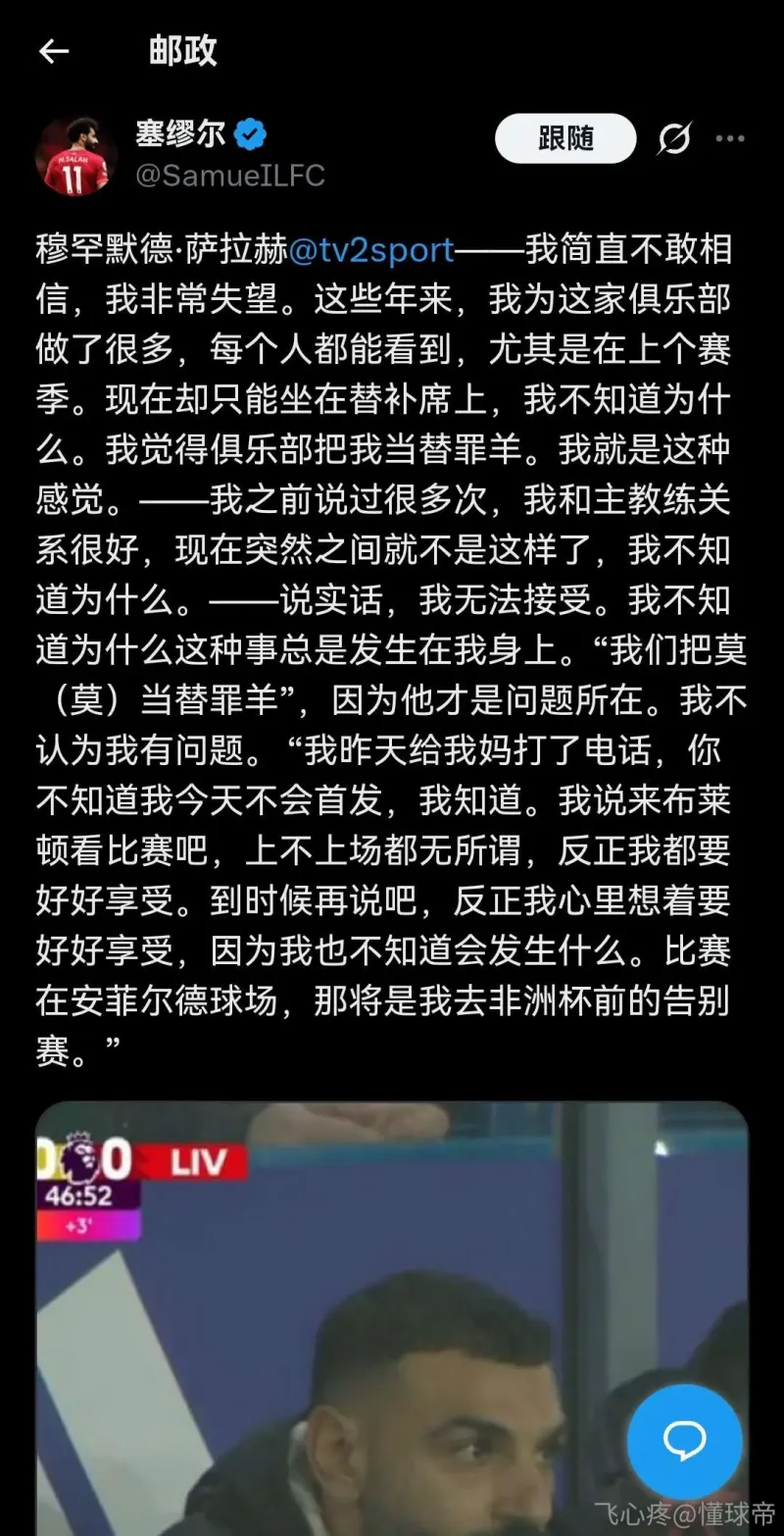 没沟通,才是最不能让人接受的。这件事,无论如何都是站萨拉赫的。斯洛特必须滚蛋。你续了萨拉赫,你斯洛特就应该说服他接受轮换。年纪大加世界杯加非洲杯,海量新源需要磨合。都是正当理由。现在没沟通直接dnp?这他妈疯了吧……