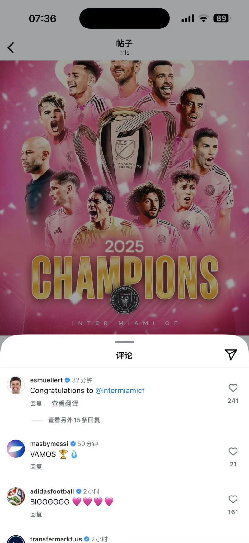 穆勒祝贺迈阿密,但德拜姐已经气疯了,哈哈哈(现在已删)