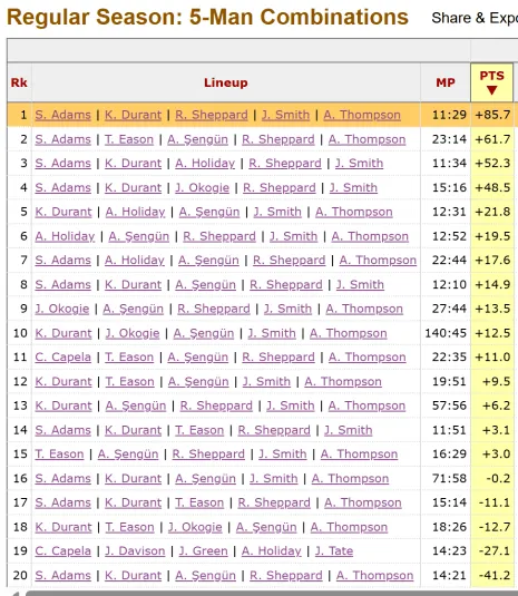 阿门-汤普森、贾巴里-史密斯、凯文-杜兰特、约什-奥科吉、克林特-卡佩拉。