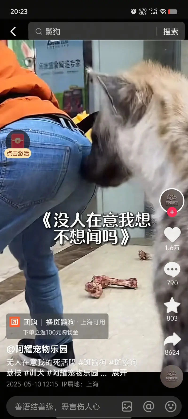 虽然这故事我不太相信 国内私人养条狼都少之又少还tm鬣狗呢但是鬣狗咬合力比狮子都强 什么狗都是去送肉