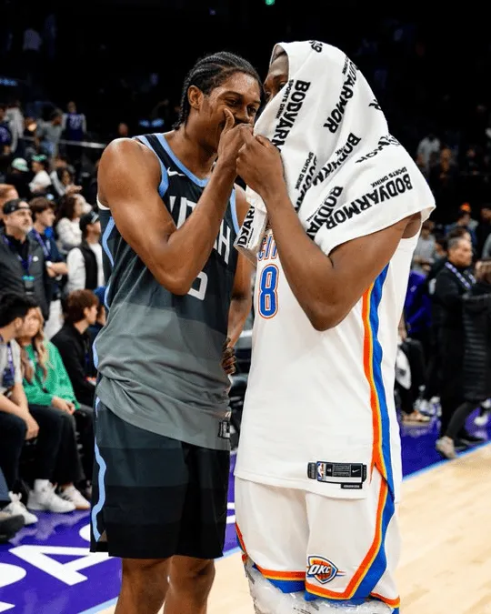 赛后爵士官媒更新了X,晒出科迪-威廉姆斯与杰伦-威廉姆斯交谈照并附文:“全是对家人的爱。”