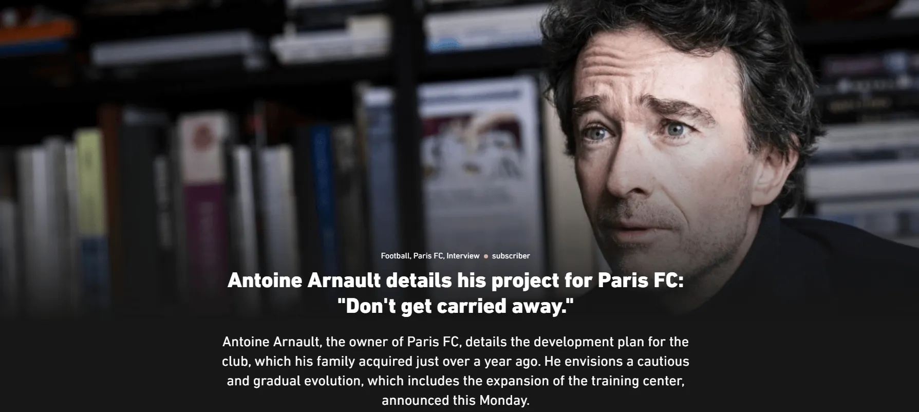 虎扑12月08日讯 法甲球队巴黎FC大老板安东内-阿尔诺接受法国媒体队报独家专访。