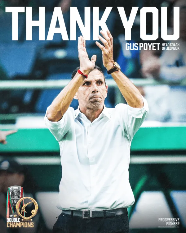于去年12月上任的波耶特通过制定严格的训练计划,一扫上赛季还得打降级附加赛的颓势,带领球队在联赛取得22场不败的佳绩。最终全北现代时隔4年再次获得K1联赛冠军,并且还拿到了韩国足协杯冠军,荣膺双冠王。